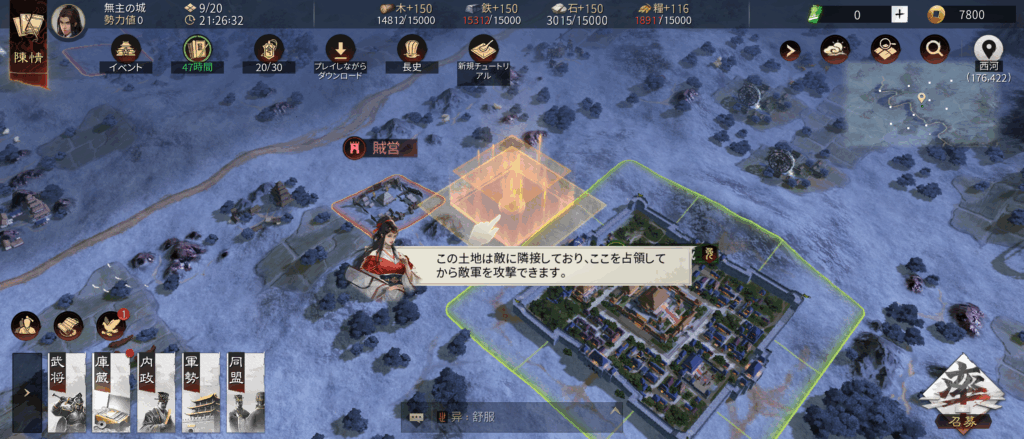 獲得した土地レベルが高ければ高いほど、得られる資源の量が多くなりますが、序盤ではレベル1やレベル2の土地から確保していきましょう。