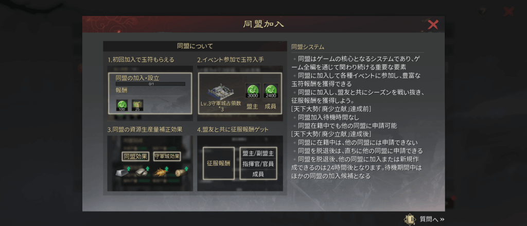 さらに初購入特典として、☆5キャラの太史慈がもれなく入手でき、銅銭や予備兵なども付いてくるため、とてもお得です!