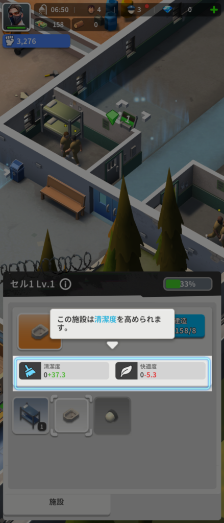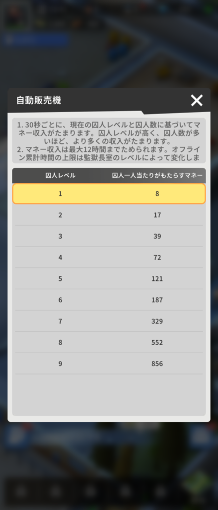 施設のレベルアップや増築によって収入効率が上がり、監獄全体を大規模に発展させられるのが魅力です。