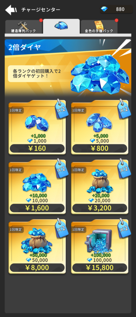 また、建造隊列パックという加速アイテムや素材などが多く含まれていて、中には序盤では入手しにくいアイテムも含まれているので、購入しておくと、とてもお得です!