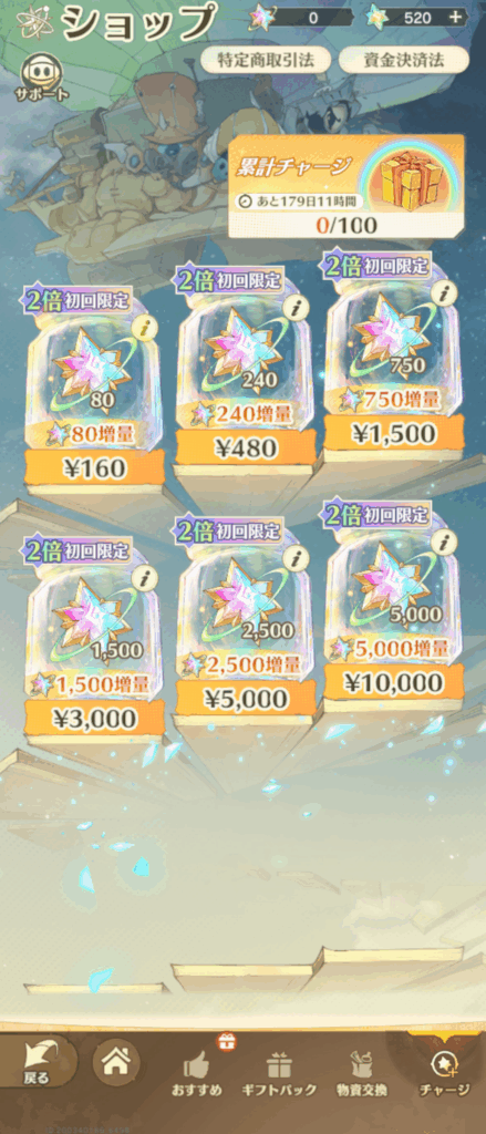 また、初心者星幻符ギフトパックは、実質的に課金することで、運命の誓いや暁のバッテリーなど序盤では入手しにくいアイテムが手に入るのでとてもお得です!