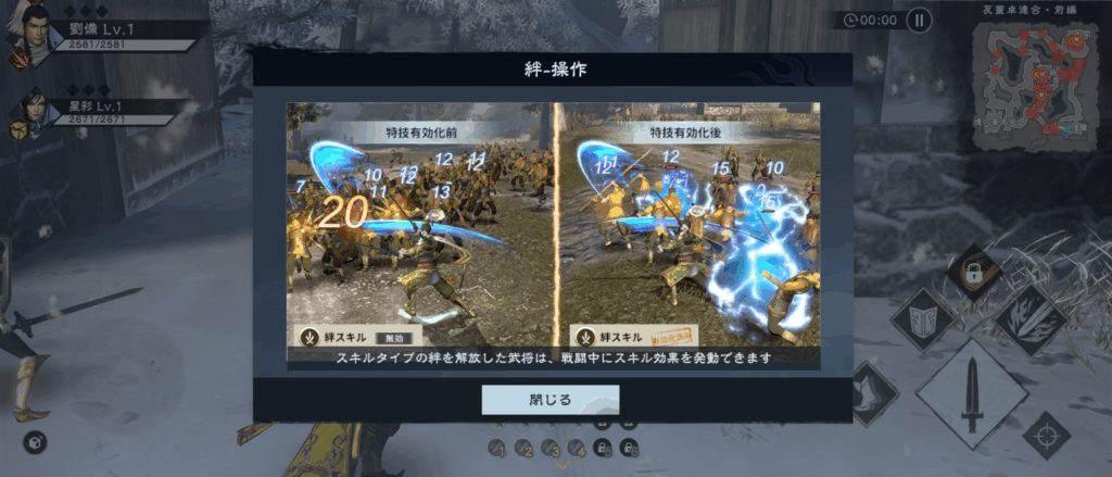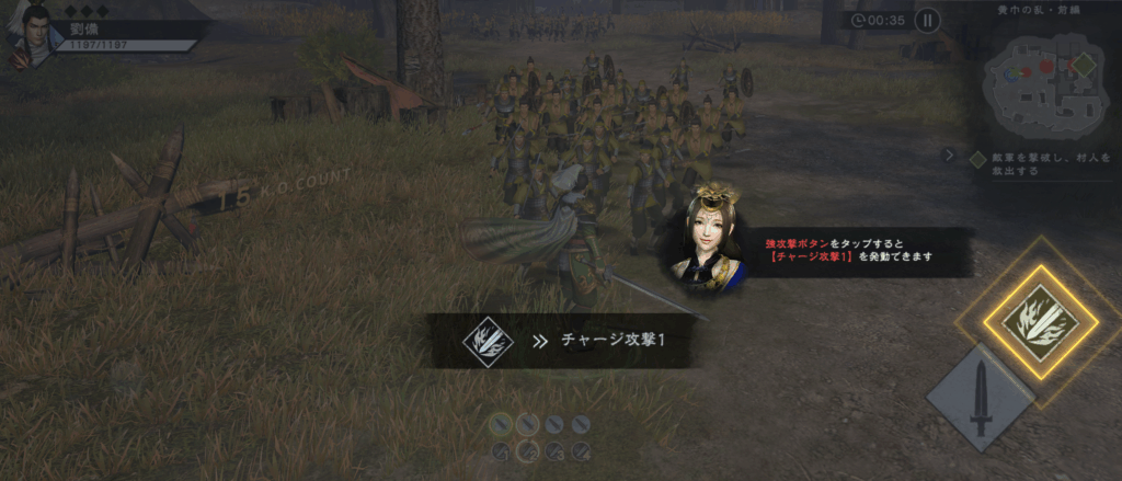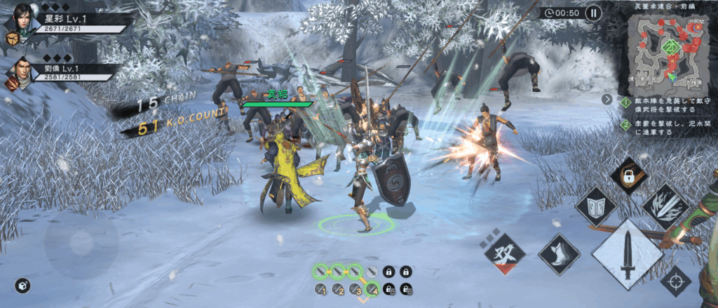ストーリーを進めていく分には家庭用ゲーム機で遊べる真・三國無双と大差ありませんが、操作性についてはプレイステーションのようなコントローラーの〇や✖などはないため、スマホ横画面でのタップ操作が基本です。