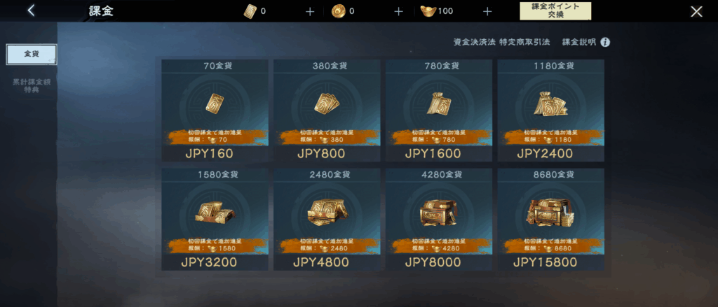 「真・三國無双 覇」の課金要素として「金貨」があり、最安値160円で購入可能です。